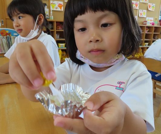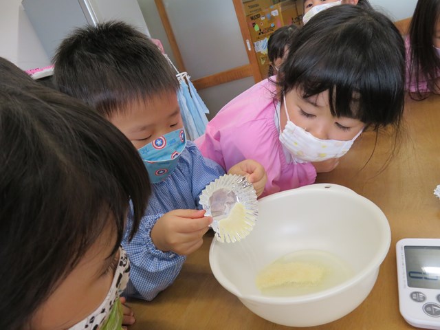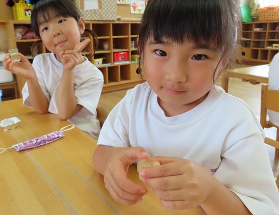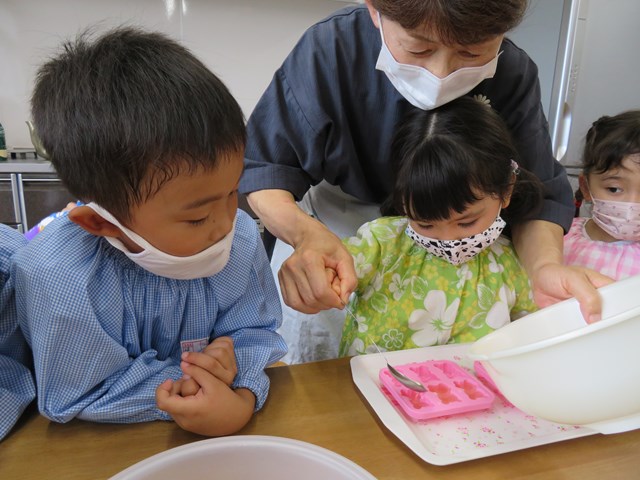 年中組のみんな、2回目のクッキング『グミ作り』はどうだったかな?これを見ていた他の年次の先生達も、「やってみたい!!」と意欲満々です。