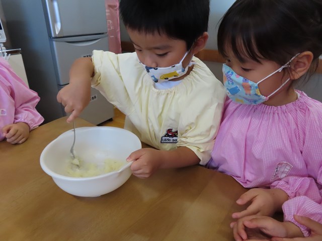 「さ、と、うって書いてあるよ。」「れいぞうこって書いてあるからひやすんだね。」文字をみんなでたどりながら、作り方を確認している姿もありましたよ。