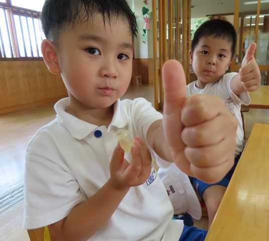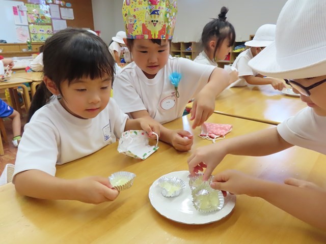 年中組では、4日に行った七夕クッキングに続いて、5~7日には『ぷるぷるグミ作り』にチャレンジしたよ✊
