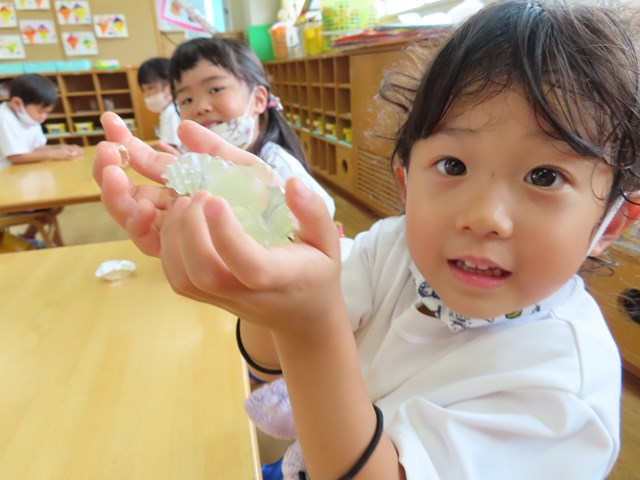 どきどきしながら、グミが壊れないようにそ~っと手に取ってみる時の、子ども達の表情が印象的でした。