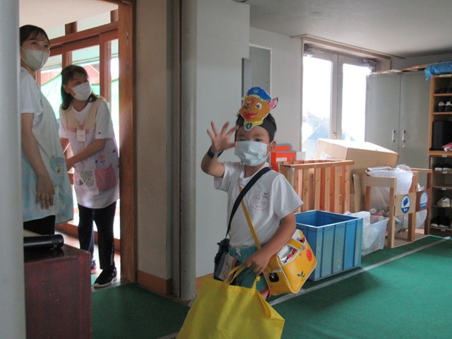 お家の人から「楽しんできてね~!!」と応援の言葉を受けながらちょっぴり緊張気味の子ども達を、先生たちが笑顔いっぱいで迎え入れていましたよ😊