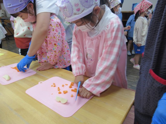 「自分で出来るもん!」とお手伝い無くても積極的にトントン切っていく姿も。