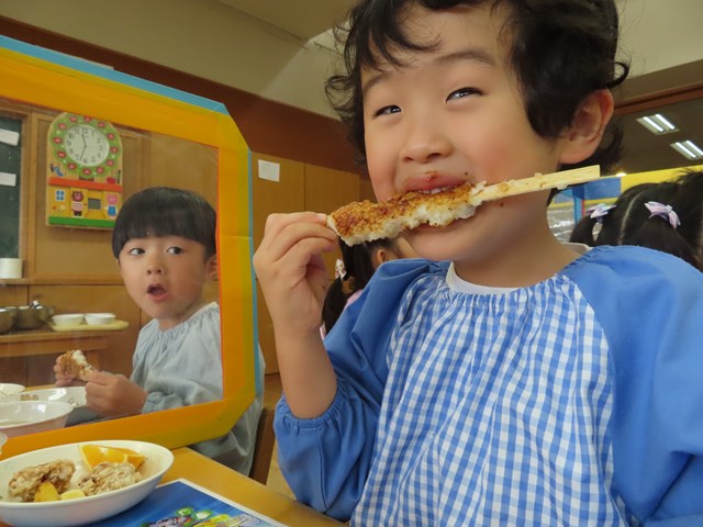 先生たちも美味しい五平餅を味わったよ♪ 美味しそうなみんなの笑顔が見られてとっても嬉しかったな。