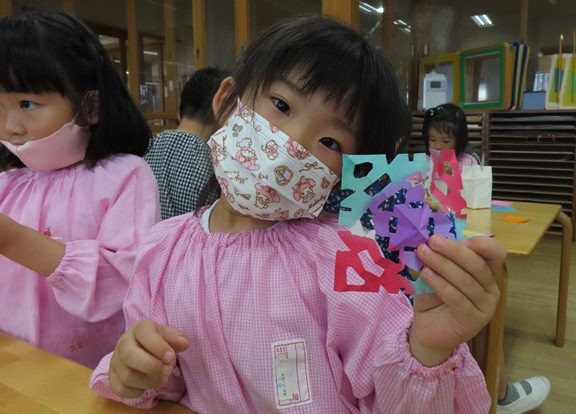 飾り切りした和紙や色紙が、個性あふれる楽しい飾りになったよ!!