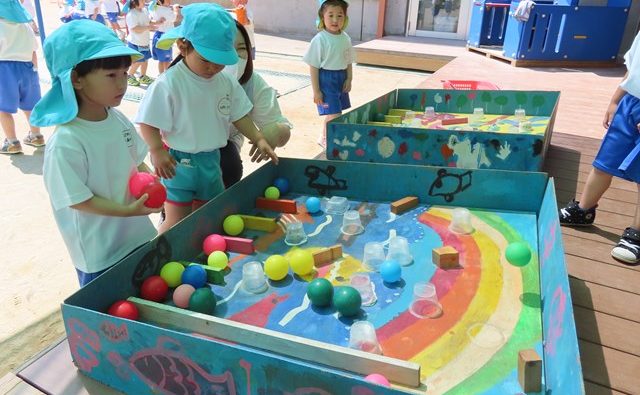 9月10日のわかばオリンピックでは、そんな年少組さんが障害走に挑戦します。今年はトレジャーハンターを経験している年少組さんですので、ハードルを少し上げてちょっぴり多めの障害物を設定しよう!と、先生たちが計画して進めていますよ。