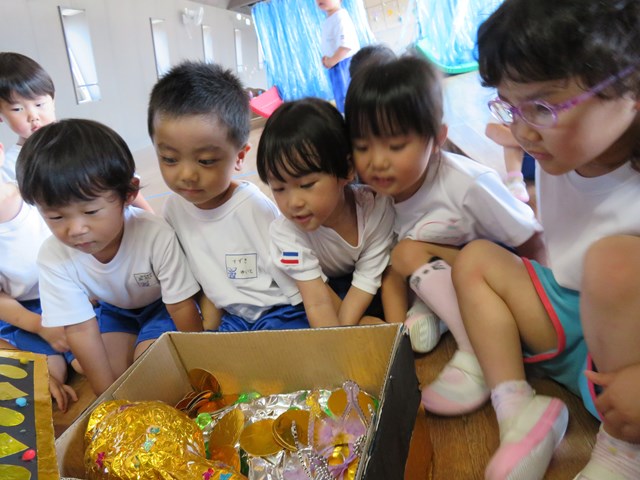 みんなが「できな~い!」と言うことなく、勇気を出してチャレンジしてみたから、ジャックからのご褒美のお宝がもらえたんだね。まるで物語のような豪華なお宝に、子ども達は目がキラキラ輝いていましたよ。