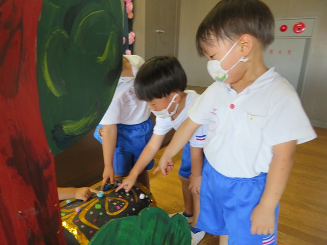 7月4日のスターフェスティバルは、年中・年長組のお兄さんたちと共同制作にも挑戦!