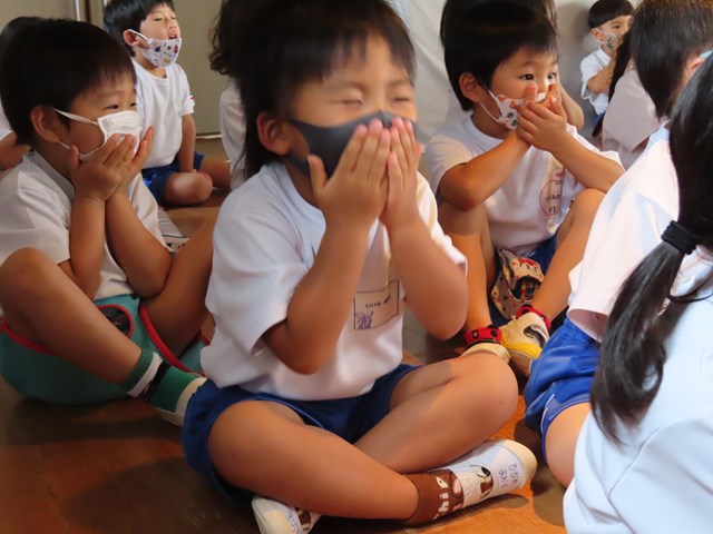 先生のお話を一生けん命に聞いて、落ち着いて取り組めていたね。そばで子どもたちを見守るお母さん方の眼差し、とっても温かく感じました。