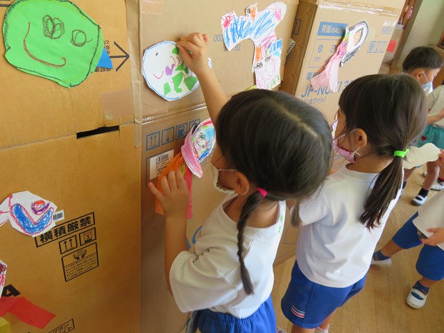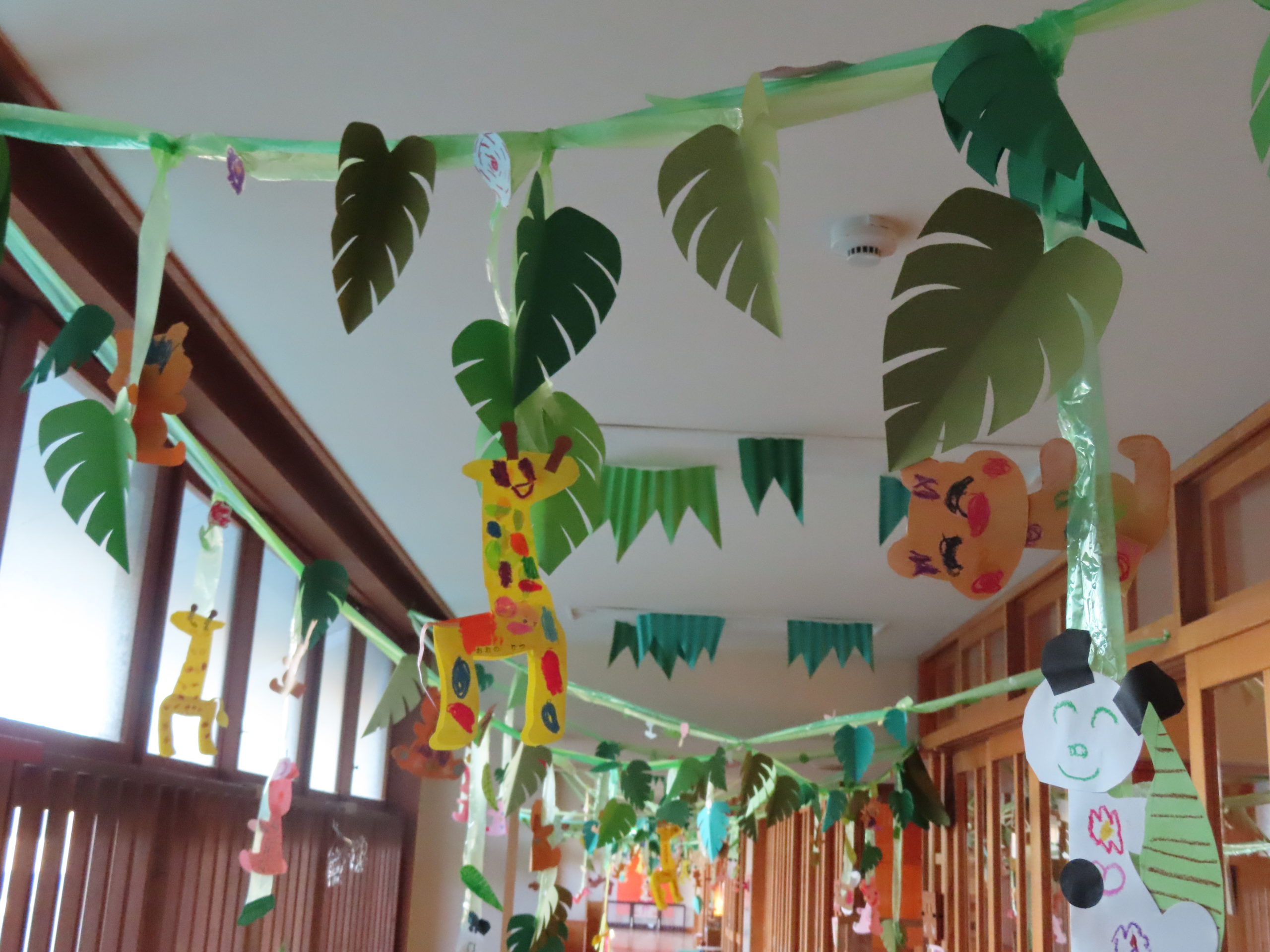 とっても素敵な動物たちの森が完成!!楽しいジャングルの中で生活しているみたいで、毎日お友達と見上げていたね。クラスを超えて、年中組5クラスが一体感を持って生活するようになりました。