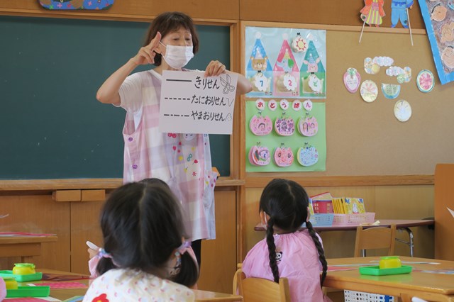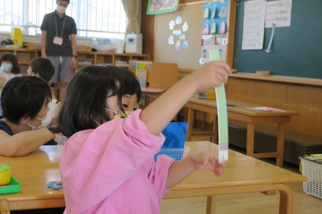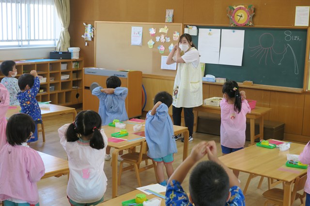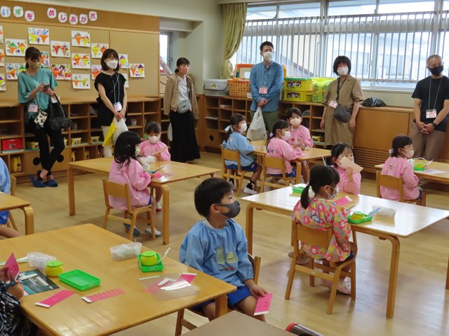 そして、年中組になって初めての保育参観は『ゆかいなタコ釣り』。ハサミをたくさん使って、みんなでつくったね。CDに合わせて『さかな釣り』の手遊び、おもしろかったね!