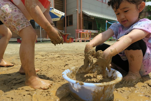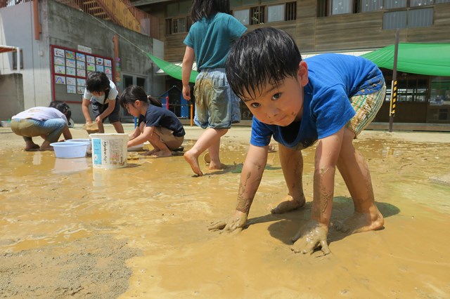 6,7月にかけては『どろんこフェスティバル』。お友達と全身泥まみれになって無我夢中で遊んだね。