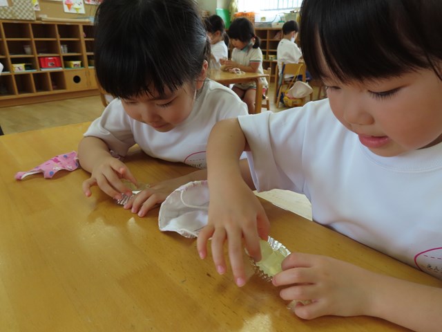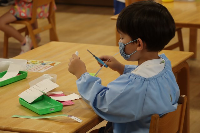 この頃から、はさみを上手に使えるようになってきた子ども達。