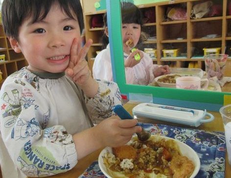 わかばカレーを嫌いな子はほとんどいなくて、調理員さんの「おいしくな~れ」の魔法のせいか、「おかわり!」続出だったね。