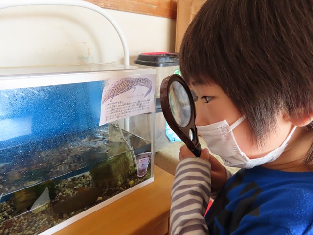 イモリの卵を発見したり、アリのお家を虫メガネやライトでじーっと観察する姿が増えました。