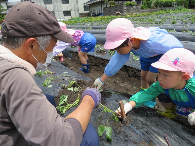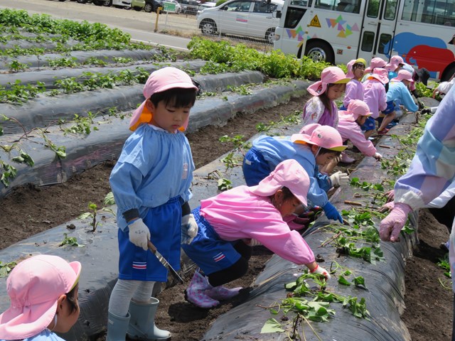 5月中旬には、バスに乗って岐阜市長森にある畑まで、さつま芋の苗植えにいきました。