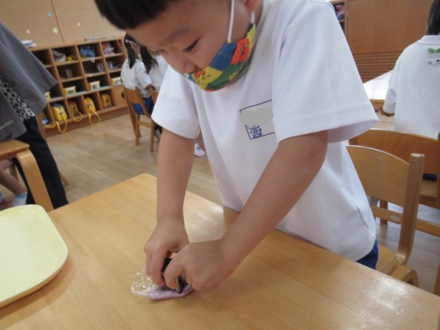 7月4日のスターフェスティバルでは、初めてのクッキングに挑戦!星の形やハートの形を白玉粉で作ったね。そうめん汁に、もっちもちのお星さまが浮かんで、まるで天の川みたいだったね。