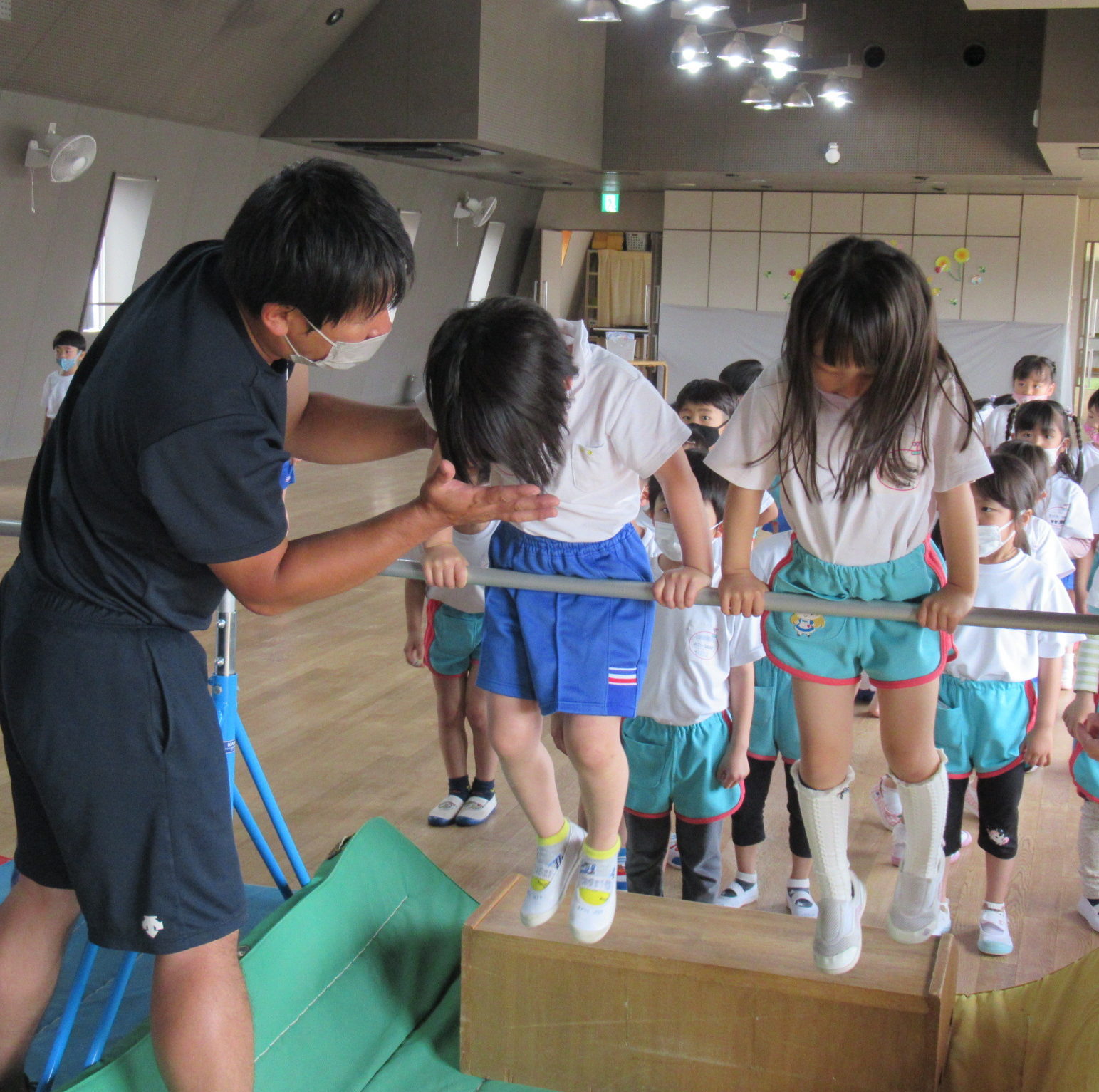清水先生が、子ども達が恐怖心をどんなところで感じるのかをじっくりと見守り分析しながら、個々にあった適切なアドバイスをしてくださり、担任の先生たちも、その指導を真剣に学んでいましたよ。