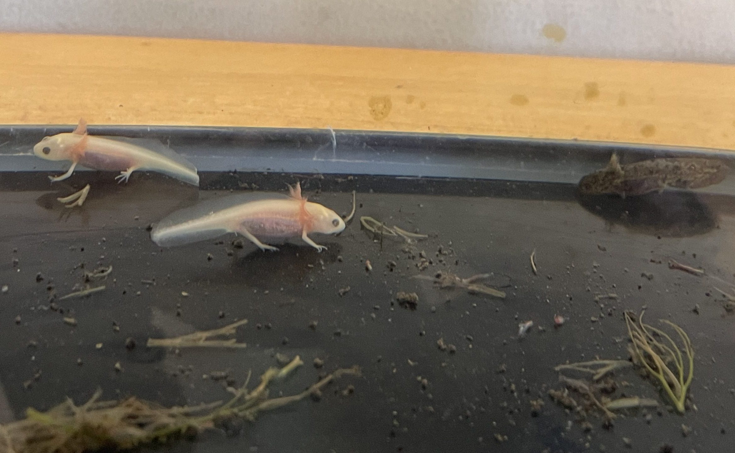 赤ちゃんのイモリのお腹が、確かにうっすらオレンジ色になっているのを発見したね!!