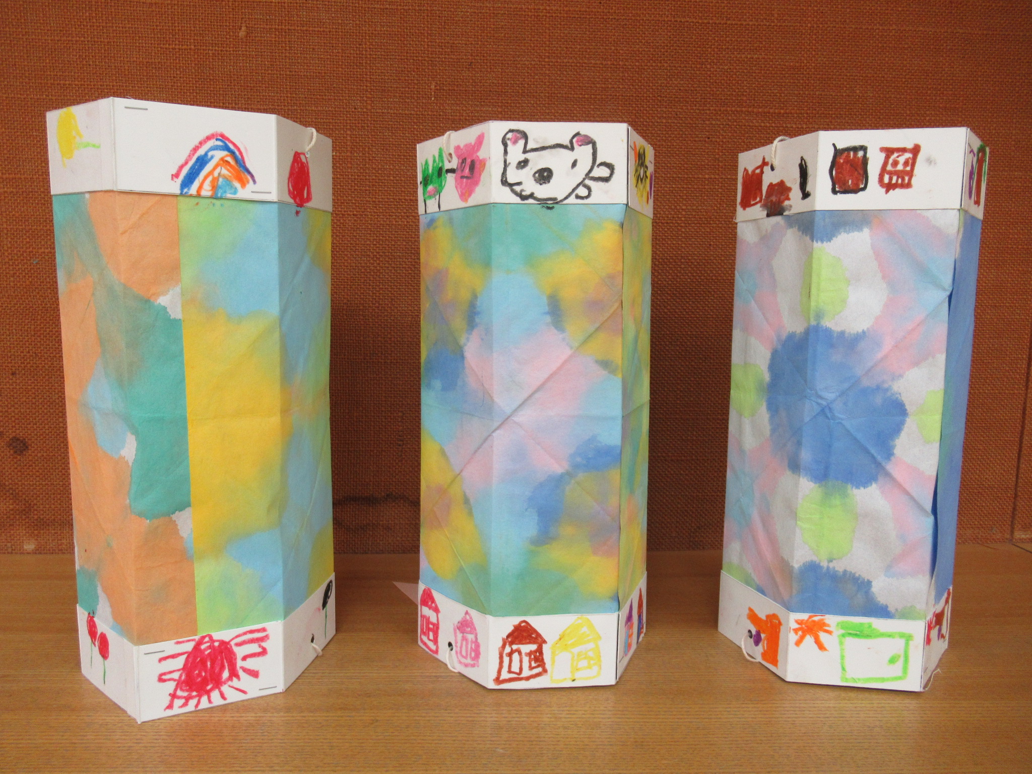 その後、この和紙を使って、子ども達の手作り提灯が完成!!9月にみんなで楽しむ『盆ダンス』(納涼盆踊り大会)には、お部屋いっぱいに飾ろうね。