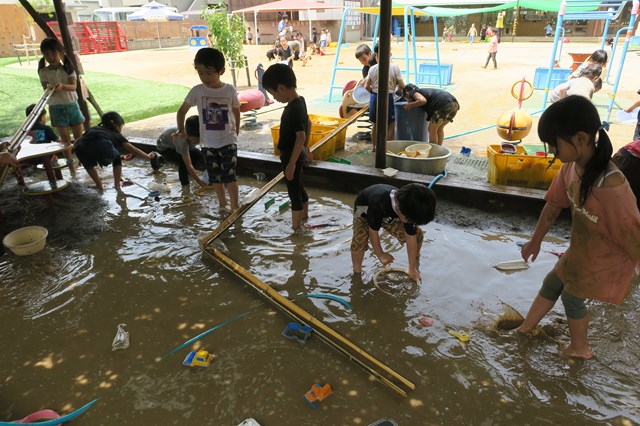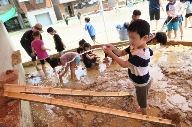 そんな子ども達を見ていた年長組の先生たちが、「子ども達が今まで、こんなにキラキラした笑顔を見せたことなかった。それくらいめちゃくちゃ楽しかったみたいです。」と思い返していたのが、『泥んこフェスティバル』です。