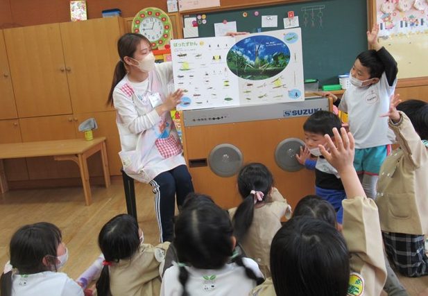 『いきもの当番』が始まったばかりの年長組のみんなは、こんな大型絵本に大喜び。