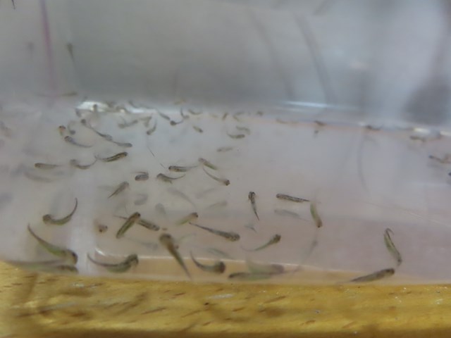 エサやりの仕方を園長先生に教えてもらい、スポイドの中身を目で確認してみると、赤い小さな生き物がふわふわ泳いでいたね。