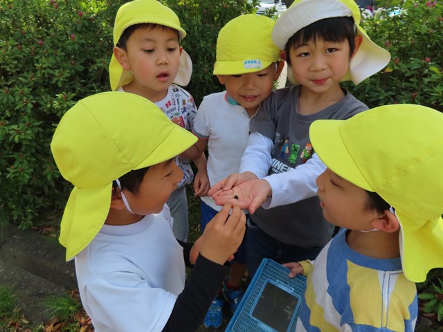 「小さいお友達にも見せてあげたいから・・・」と、自ら虫かごを抱えて、ちゅうりっぷ組さんのところに見せに行ってくれる子も。そんな姿をとっても頼もしく感じました。