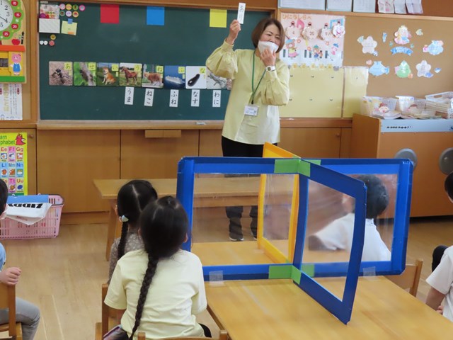 子ども達は、話を聞く姿勢がとても良くなってきました。学研まなびタイムでも、文字の読み書きについて、姿勢正しく、真剣な表情でお話を聞いていたね。