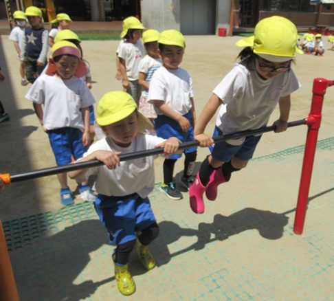 うんていでは身体を上手によじりながら、次々に進んですぐにゴール!!