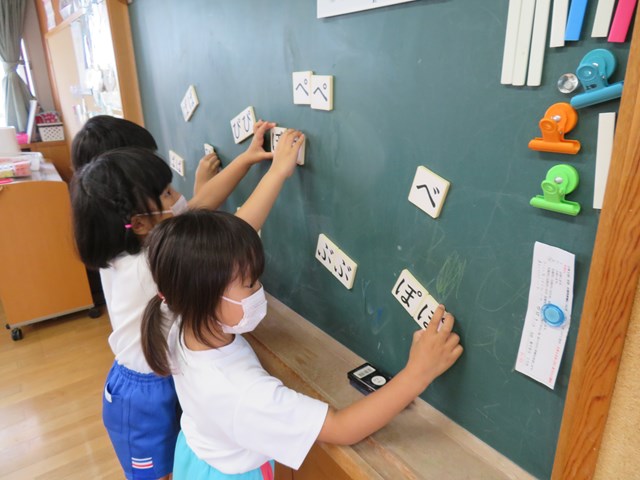 そのあと、黒板に貼られた文字とおなじものを並べていきました。