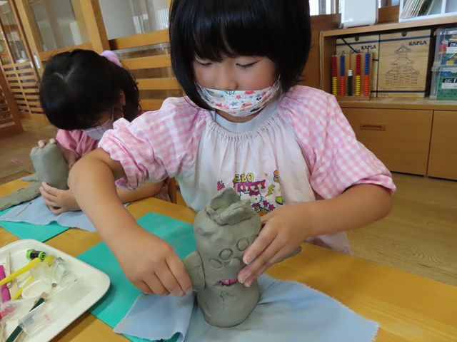 7月のアートタイムでは、いよいよ粘土を使って、「不思議な魔除け」作りに挑戦したよ!!
