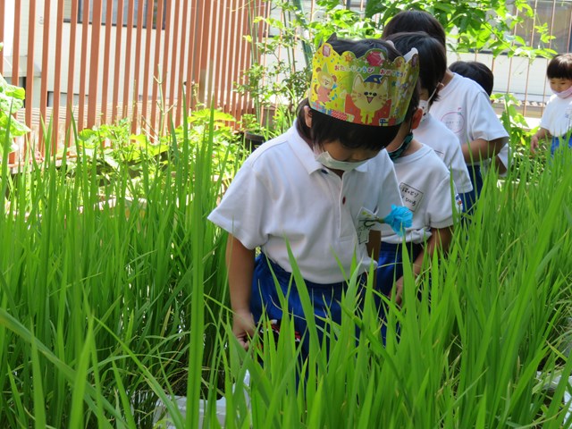 今年初めて、年長組では「おこめをそだてよう」プロジェクトに取り組みました。
