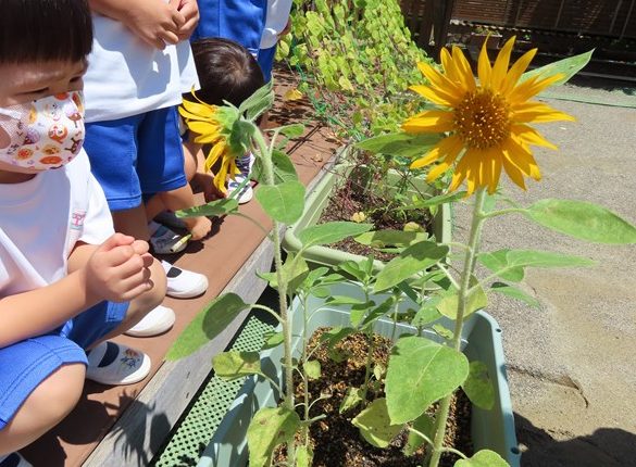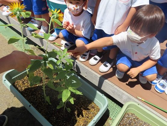 (この画像では、預かり保育で登園している子ども達が見に来てくれたので、プランターをくるっと後ろ向きにしています💦)