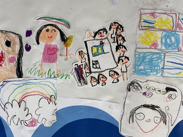 自分とお友達がたくさん描かれている絵では、みんなにっこりしているのが、とってもステキ😊
