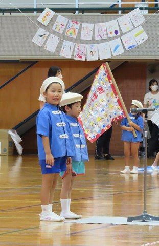年長組さんから順に、胸を張っての登場です。旗手を務めてくれたのも年長組の子ども達。