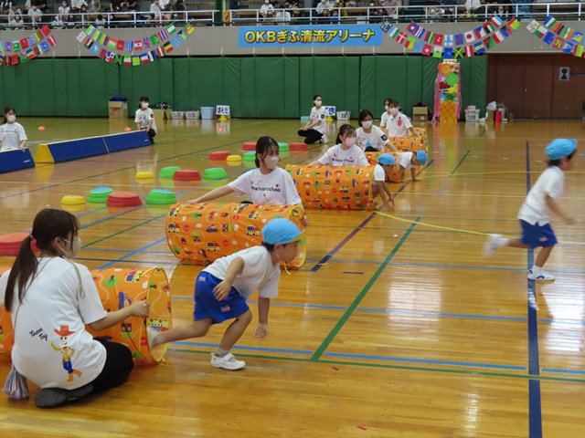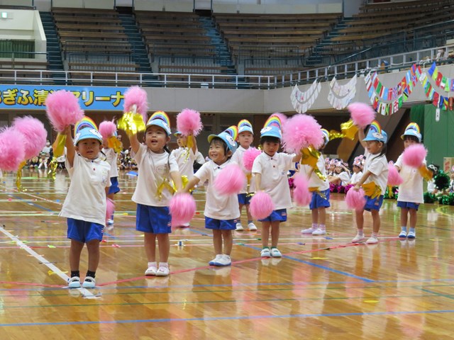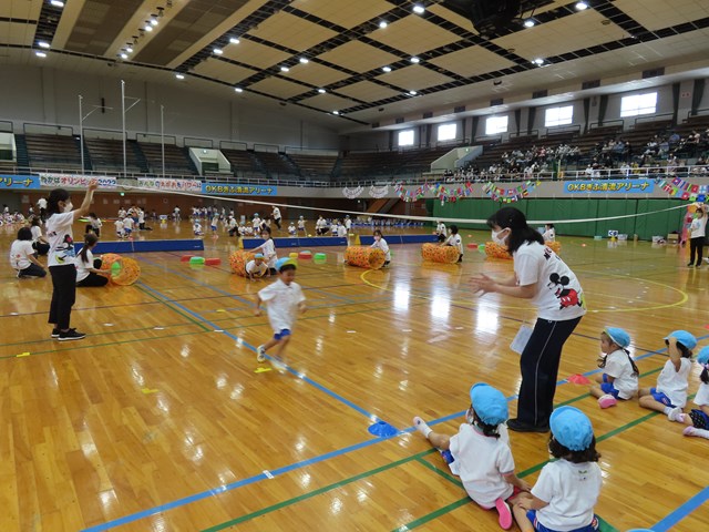 開会式では、園長先生からみんなへの応援メッセージを、みんなはとっても静かにきいていたね。園長先生の優しい声が会場に拡がり、いつものようにこの会場で園長先生がみんなのことを見守り、応援してくれているような嬉しい気持ちになったね。