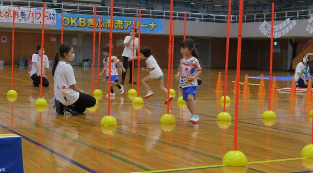忍者になりきってスタート!!ジグザグのスラロームでは、身のこなし方が上手になっていて、棒があまり倒れなかった年中組。平均台は手を広げて、バランスを上手にとっていたね。ゴールテープを切るまで、忍者のように素早く、力いっぱい走り切っていたみんな。