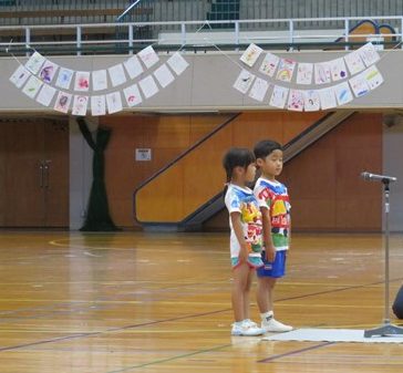 年長組のみんなが『プログラム紹介』で司会進行をしてくれました。これまでに何度も何度も練習して、本番は堂々と発表してくれましたね。子ども達は、会場のみなさんの大きな拍手がとっても嬉しかったそうです。