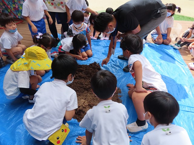 みんなでこの夏に育てたカブトムシが産んだ卵、そして幼虫をまたみんなで育てて、来年の夏にカブトムシになっていくのを楽しみにしていようね。」
