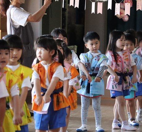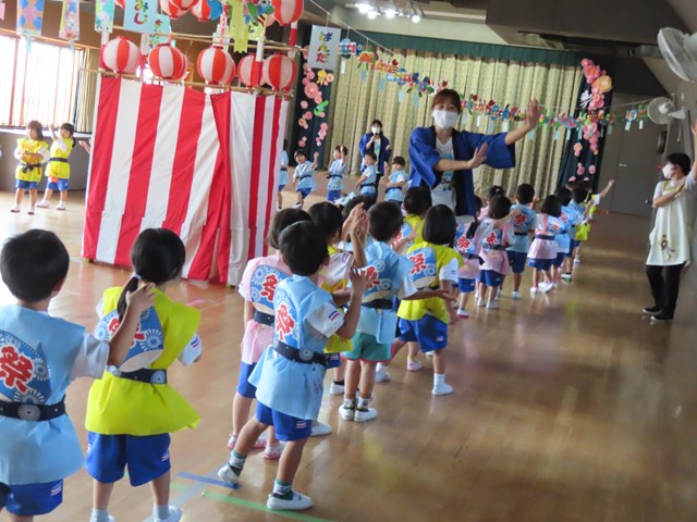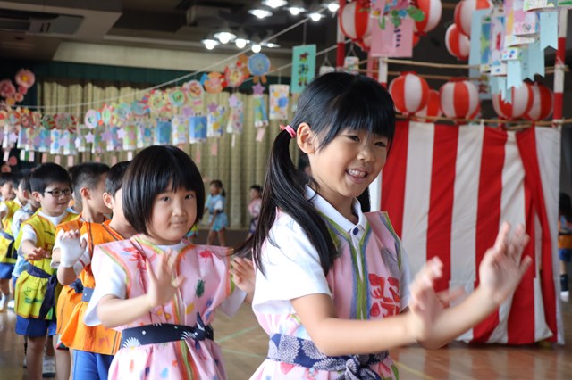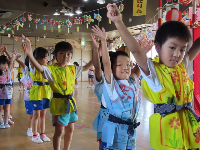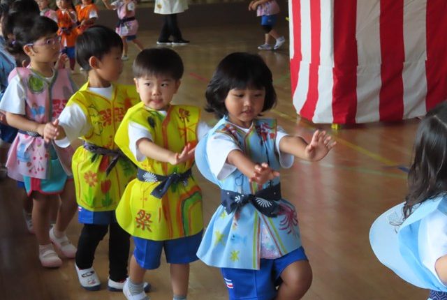 年長組のみんなにとって、幼稚園最後の盆ダンス。さすが、一つ一つキレのあるポーズや掛け声で盆踊りを盛り上げてくれました。
