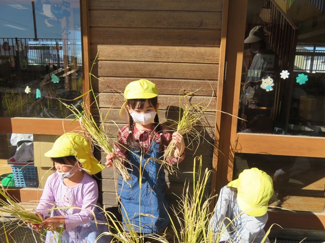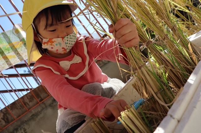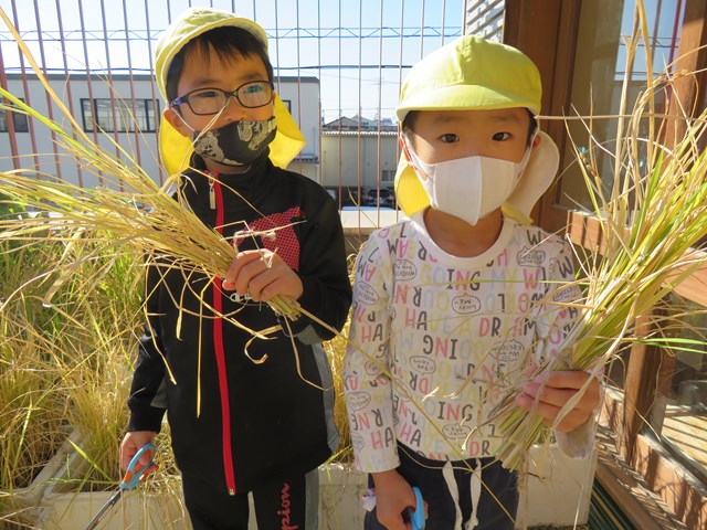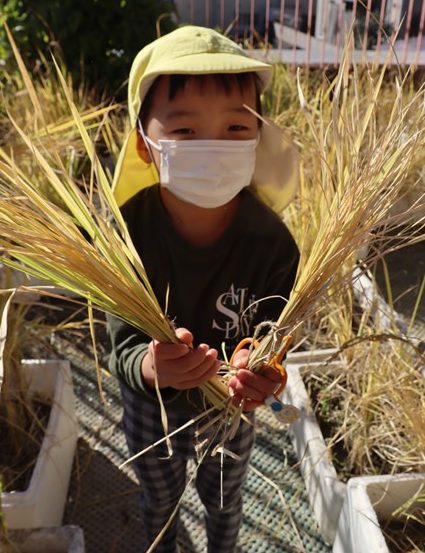 「自分でできたよ。やった!!」クラスのお友達と一緒に稲刈りできたことも、嬉しかったようですよ。