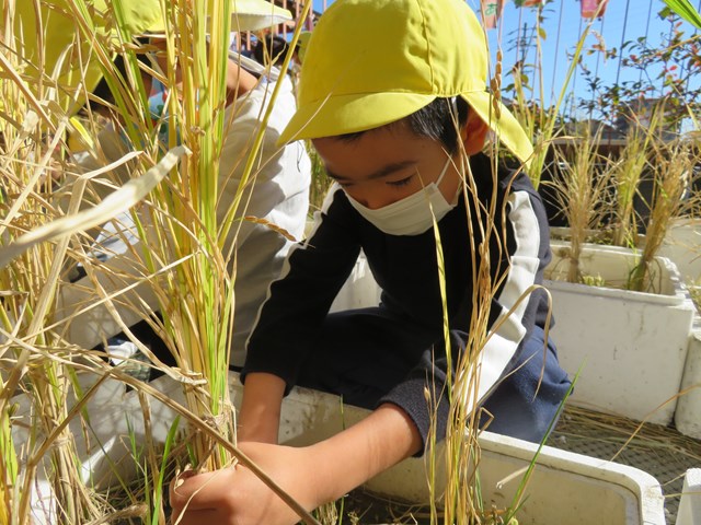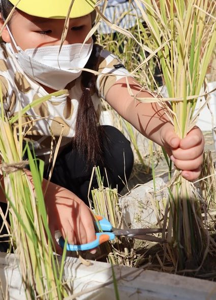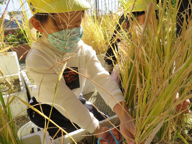 中にはなかなか切れなくて四苦八苦している子もいましたが、たわわに実ったお米を見ながら頑張っていましたよ。