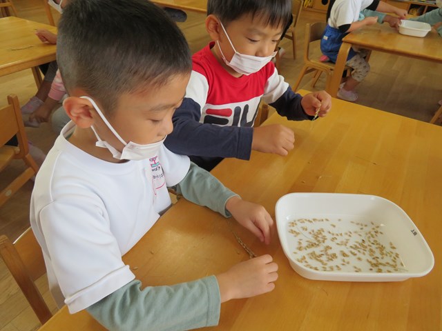 どのクラスでも、子ども達はじっとお米を見つめながら、集中していましたよ。