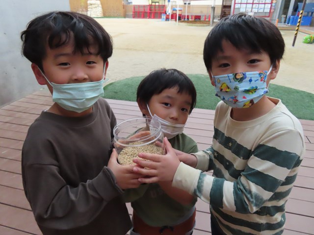 とれたピッカピカの白米は、お給食でご飯が出る日に混ぜて、幼稚園のみんなで大切に味わいたいと思います。楽しみにしていてね!