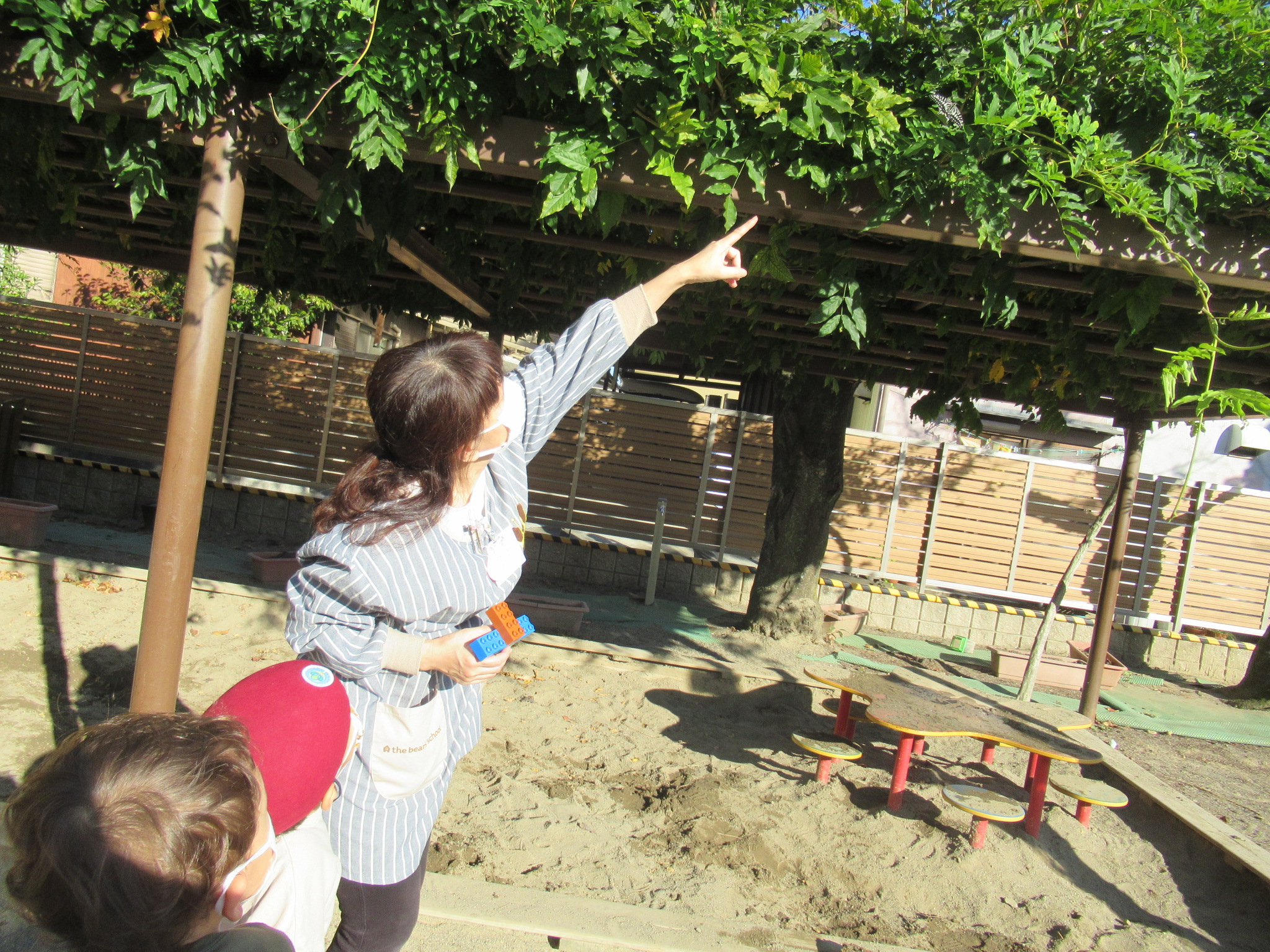 🌰「実がなるには1年以上かかる」といわれていたクヌギの木。すっかり背が高くなり、毎日毎日楽しそうな子ども達の歓声を聞いているからか、少し早めに実をつけてくれたみたい😊「どんぐりがなってる!」と子ども達が教えてくれました。
