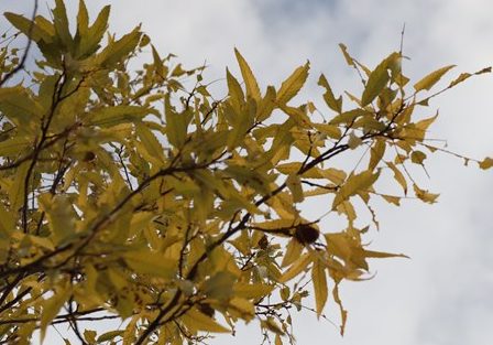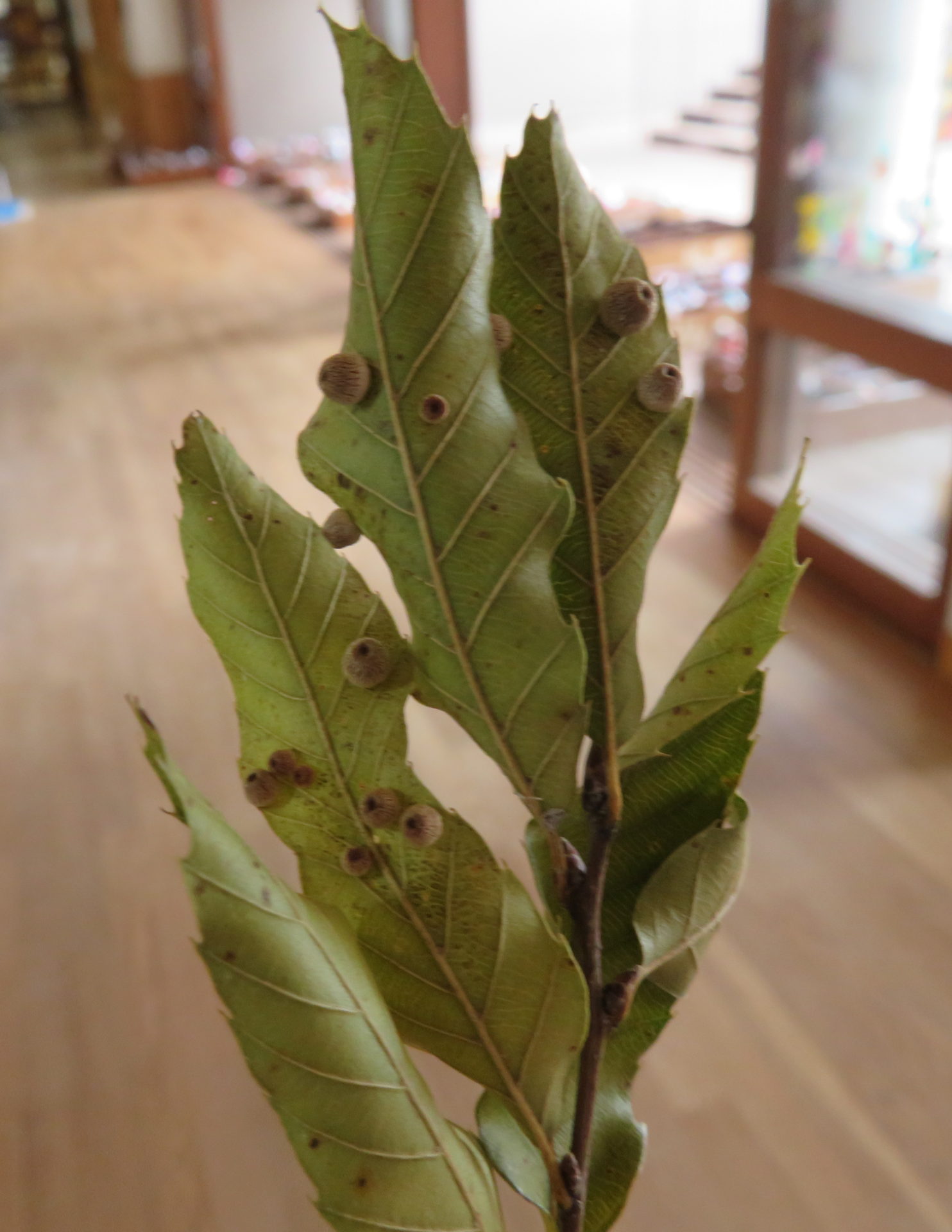 クヌギの葉には、虫が作った小さなこぶ(虫こぶ)が沢山くっついているのも、子ども達が発見!「虫こぶ」の中には『クヌギハケタマフシ』という虫が住んでいるそうです。