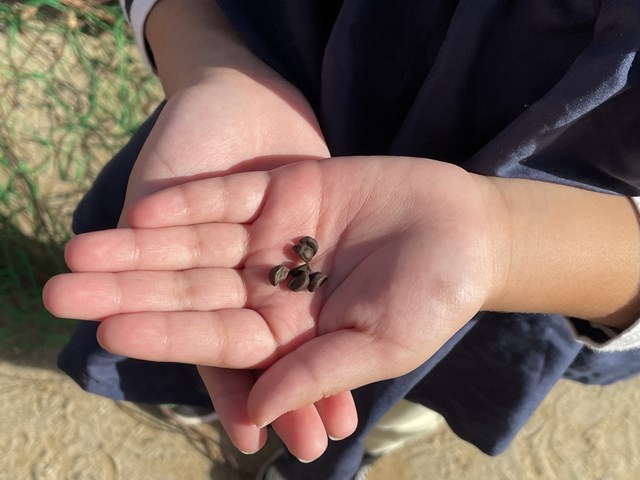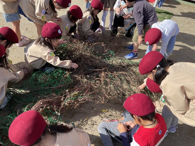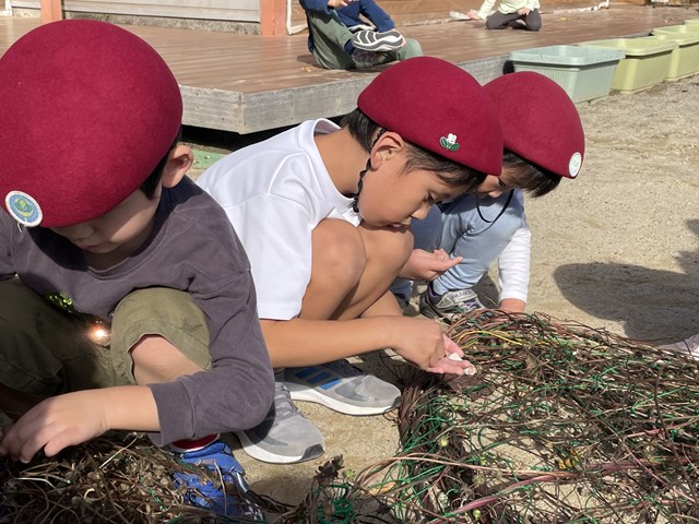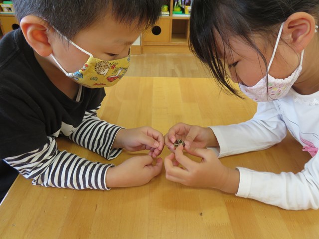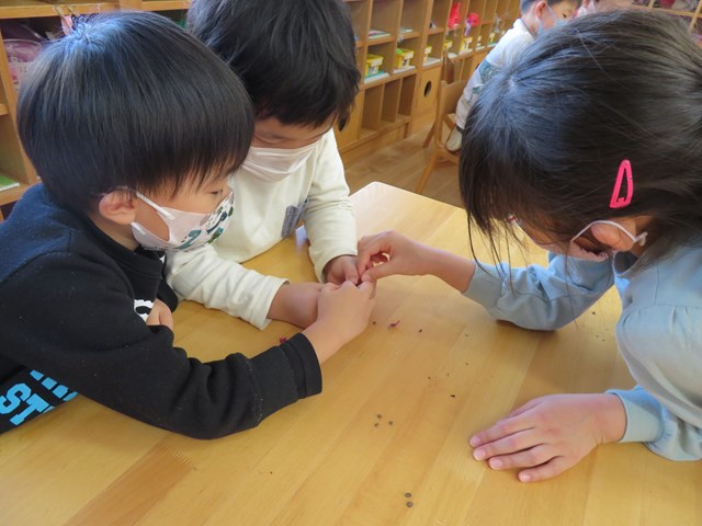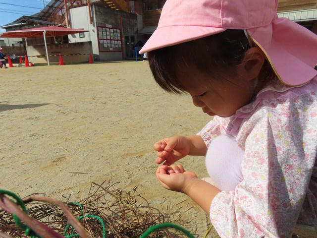 幼稚園のみんなは、毎日朝も帰りも種取りに夢中です。