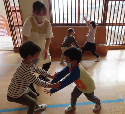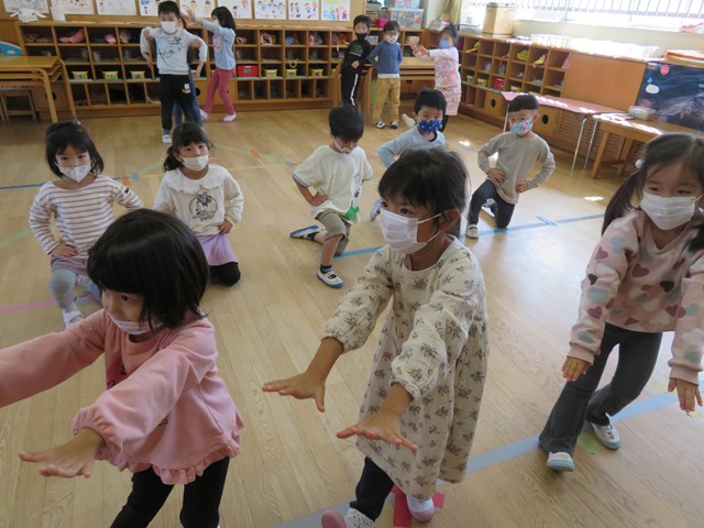 どんどん夢中になっていく子ども達を見ていると、来週あたりからはお部屋や廊下のあちらこちらで『全部の役を覚えてずっと踊り続ける姿』が見られるようになりそうな予感😲