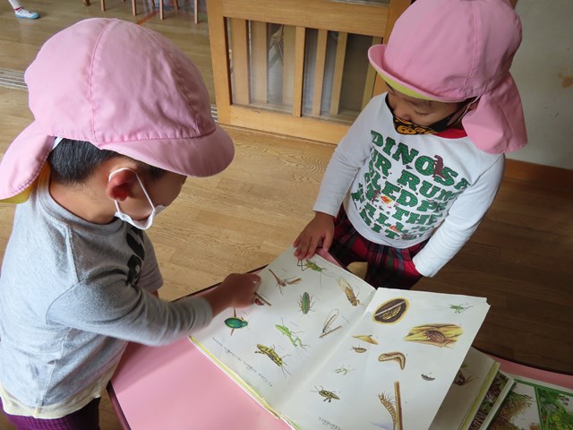 友達と一緒に図鑑を指さしながら・・・「早く、虫探しに行きたいね。」