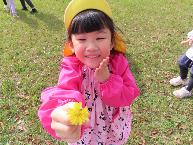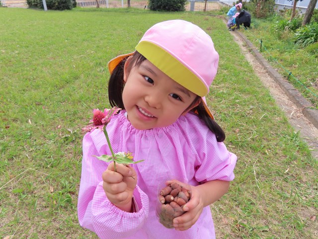 きれいなお花を見つけて・・・やさしい笑顔になったまなちゃん。